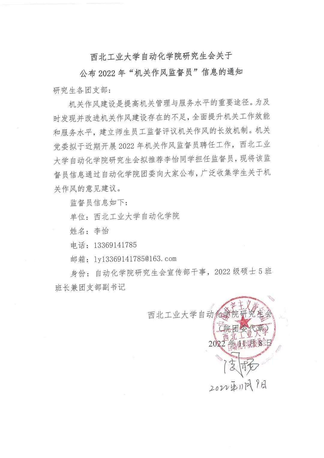 肉漫屋 研究生会关于公布2022年“机关作风监督员”信息的通知