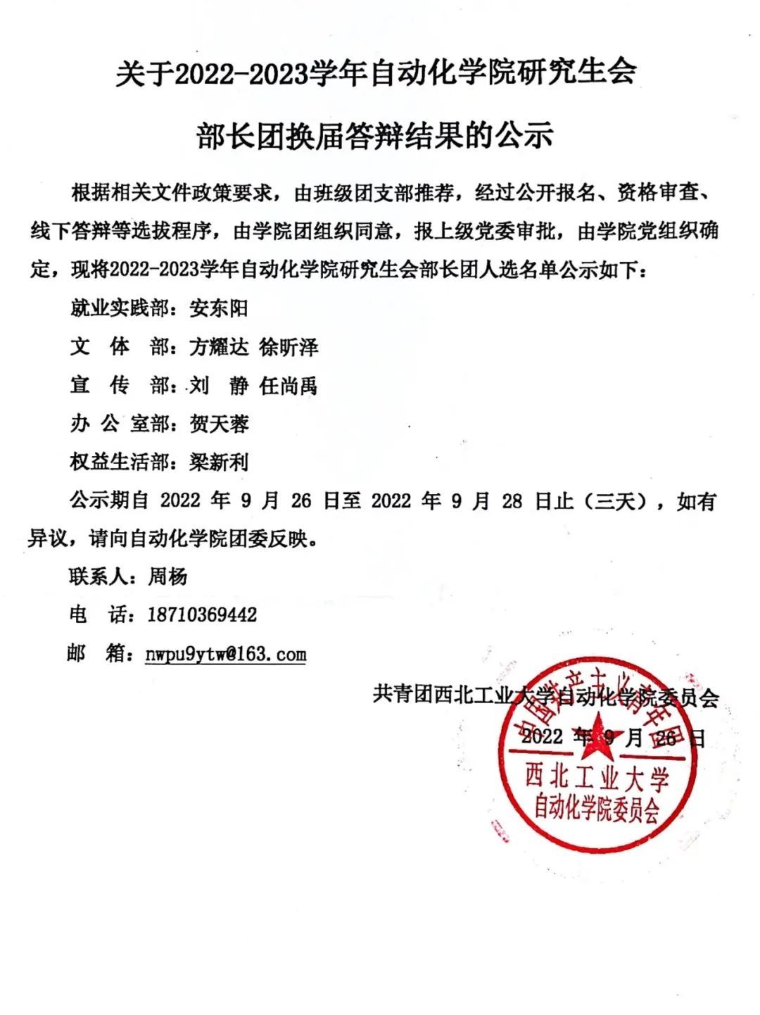 关于2022-2023学年肉漫屋 研究生会部长团换届答辩结果的公示